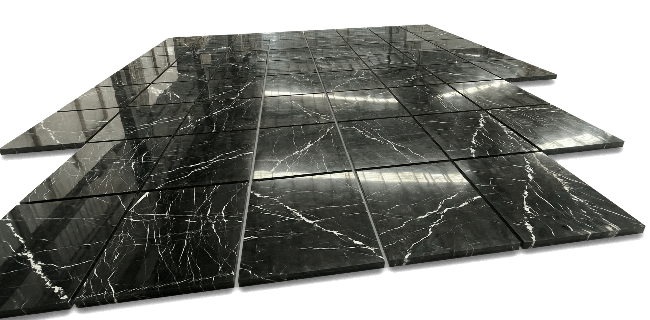 Our Nero Marquina tiles are expertly cut and calibrated for seamless installation. We perform rigorous dry-lay inspections to ensure consistent tonality and vein flow across every square meter of your project.