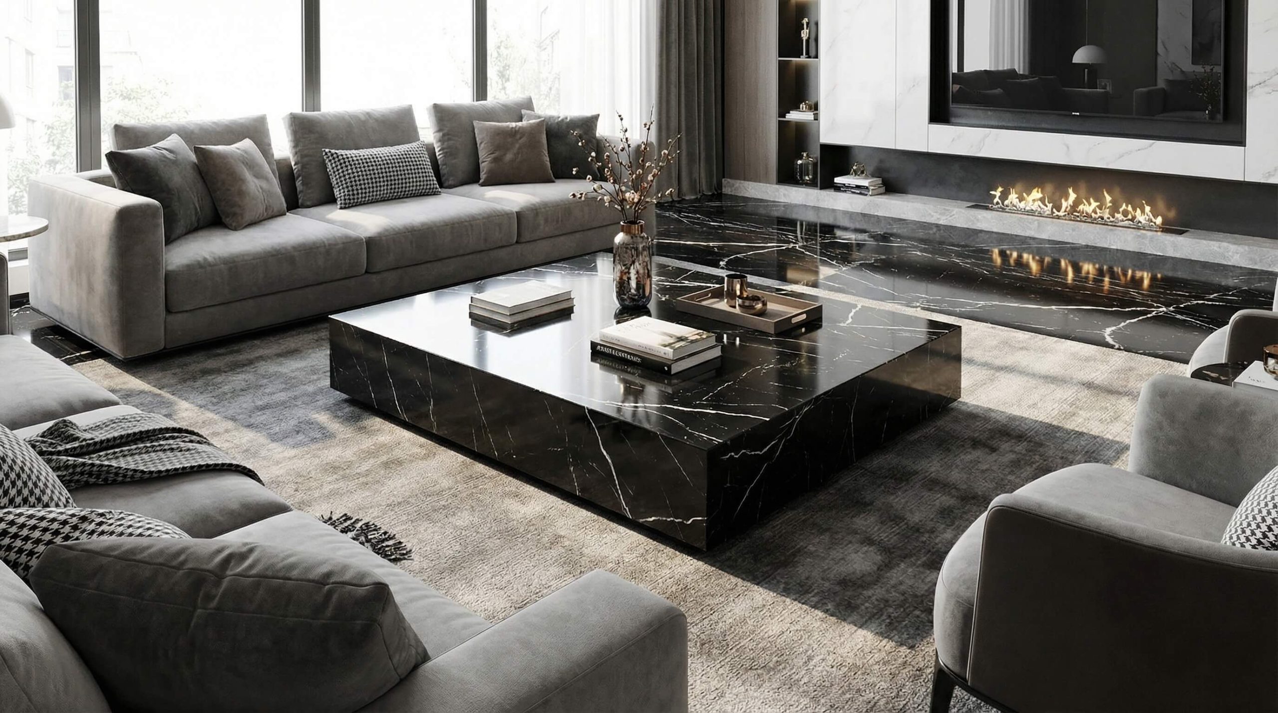 Explore our exclusive inventory of Nero Marquina slabs. We offer large-format cuts with varying vein intensities—from subtle white streaks to dramatic lightning patterns—perfect for wall cladding and flooring continuity.